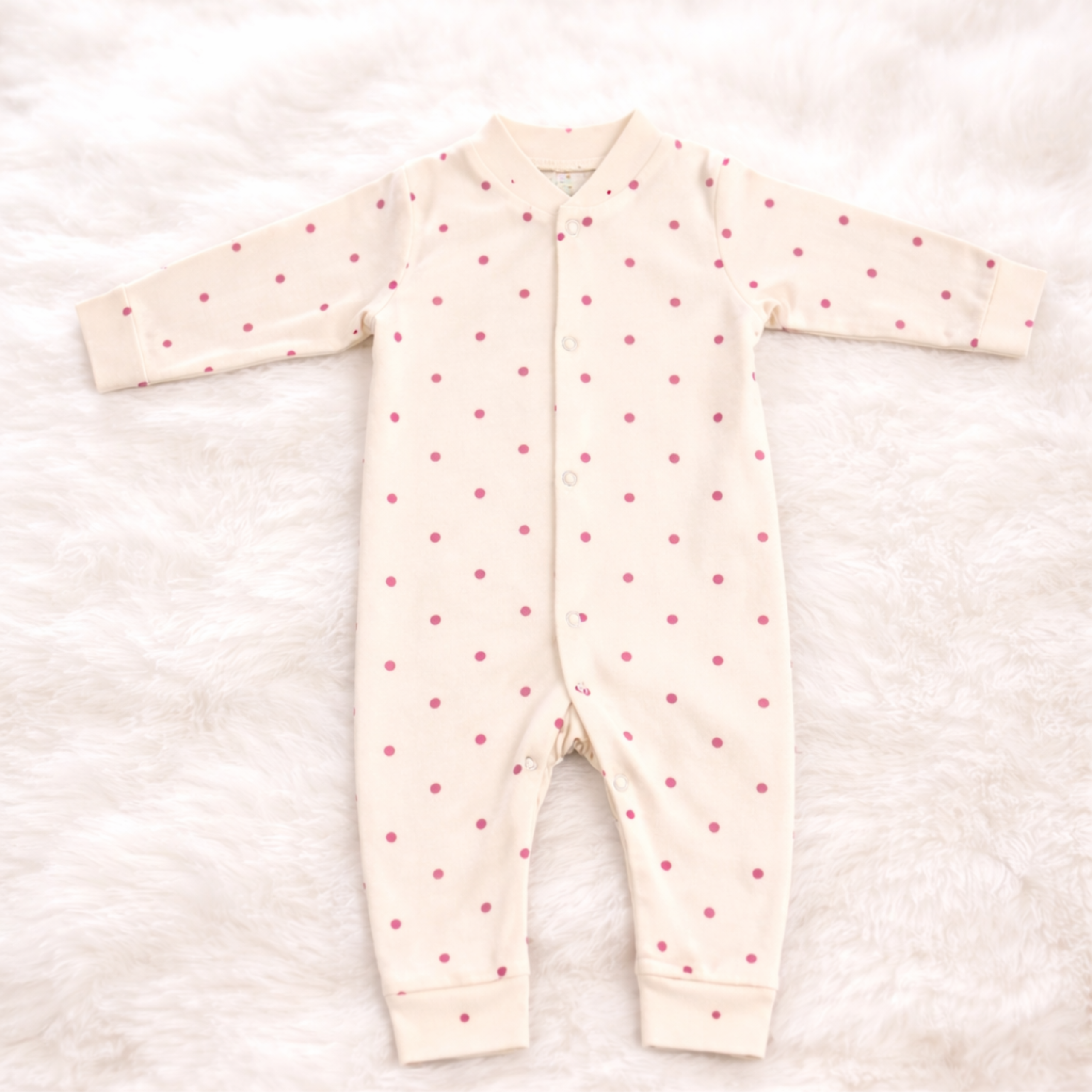 Timeless, soft, and effortlessly cute, our Polka Dot Comfort Cotton Bodysuit is crafted from premium breathable cotton to keep your baby cozy all day long. The classic polka dot print adds a playful charm, while the gentle, skin-friendly fabric ensures maximum comfort for delicate skin. Designed with a relaxed fit and easy snap-button closures, this bodysuit makes dressing and diaper changes quick and hassle-free—perfect for everyday wear, naps, and playtime.